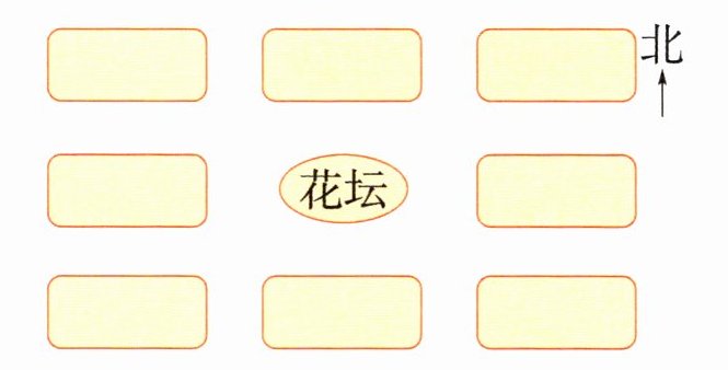 (4)奇奇家和花坛的西北方向是亮亮家。