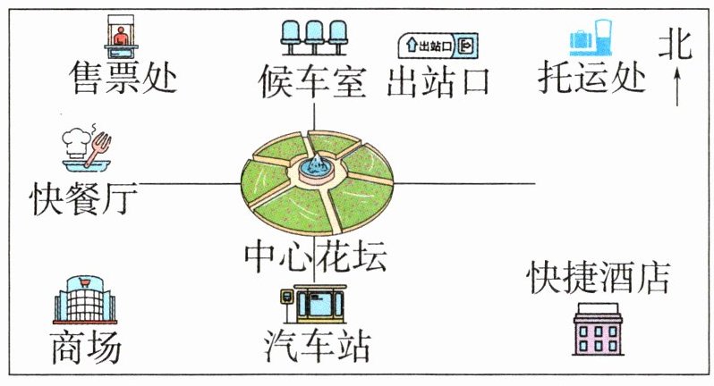 1. 下面是某火车站广场周围的主要服务设施示意图。