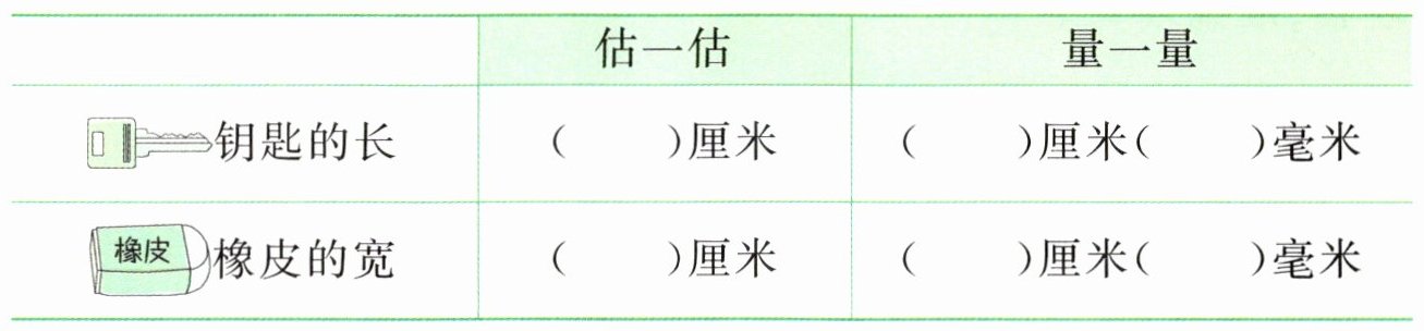 1. 先估计,再测量。(测量实际物体)