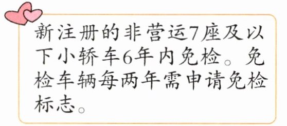 3. 奇奇家2024年6月28日买了一辆5座小轿车,他们下次申请免检标志的日期是( )年,他们必须在( )年去检验。