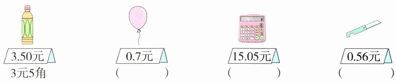 5. 把下面商品的价格改写成以“元”为单位的数。