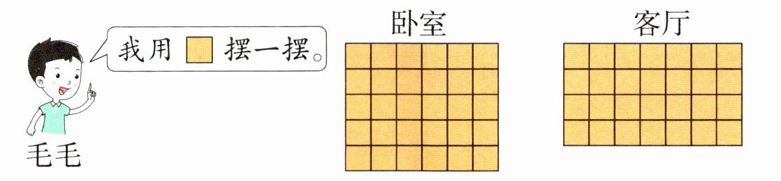 3. 毛毛家卧室和客厅选用了同样大小的地砖,你知道哪个的面积大吗?