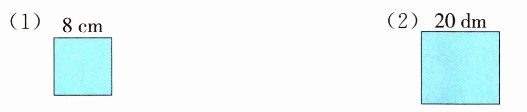 $8×8 = 64$(平方厘米)@@$20×20 = 400$(平方分米)