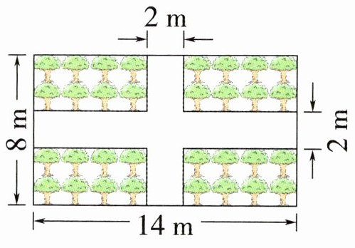 3. 花园小区有一片绿化带(每块绿化带的长相等,宽也相等),两条小路穿过了绿化带(如图)。