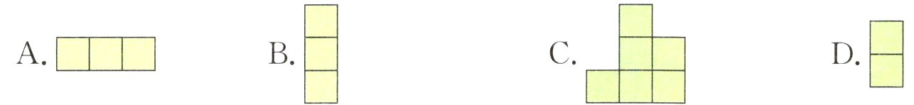 5.(推理意识)用小正方体搭一个立体,从前面和上面看到的图形都是如图这个形状,要搭成这样的立体最少用( )个小正方体,最多用( )个小正方体。