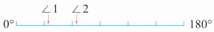 3. (新角度)右图线段表示的是0°到180°,∠1和∠2是一个三角形的两个内角,请你根据∠1和∠2的度数判断这个三角形是( )。