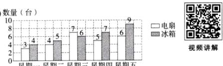 (2)这五天电扇销售量最多的是星期( ),冰箱销售量最多的是星期( )。