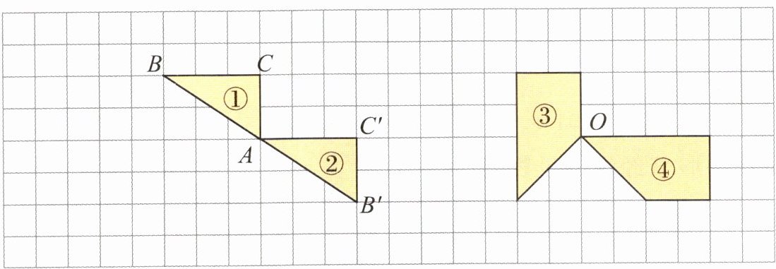 示例:将三角形①绕 A 点逆时针旋转 180°@@示例:将梯形④绕 O 点顺时针旋转 90°