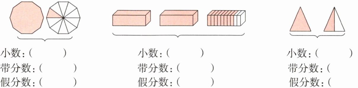 3.用小数、带分数和假分数分别表示下面每个图中的涂色部分。