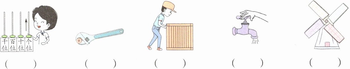 1. 下面几幅图中的运动属于平移现象的在括号里画“√”。