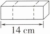 3. 桌面上有一块棱长和是88厘米、长是14厘米、左、右侧面是正方形的长方体木块,把它按照下图方式切开,分成三部分,分开后表面积之和比原来增加了多少平方厘米?