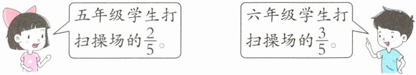 4. 实验小学的操场约占整个校园卫生区的$\frac{1}{6}$,周五下午学校安排五、六年级的学生负责打扫操场落叶。两个年级的学生分别打扫校园卫生区的几分之几?