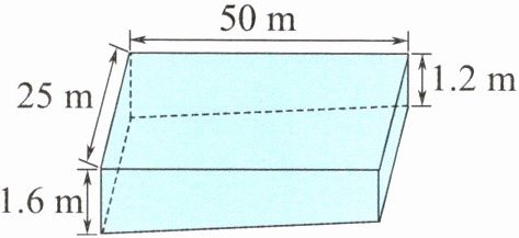 2.某市游泳健身中心的室内泳池长50米,宽25米。最浅处水深1.2米,最深处水深1.6米。“泳池的容积是多少立方米?”对这一数学问题以下两位同学展开了讨论。请根据他们的思考过程解决问题。