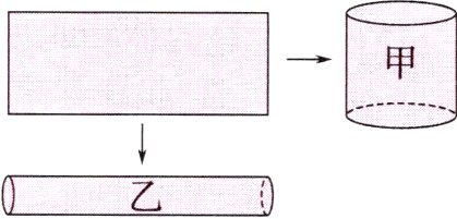 3. (邯郸真题)丫丫用两张相同的长方形纸片(如图)围成不同的圆柱形纸筒,并给这两个纸筒都配上两个底面,下面说法正确的是( )。