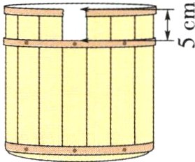 2. 一个底面直径是4分米的圆柱形木桶,高是4分米。在这个木桶上有一个缺口(如图),这个木桶最多能盛多少升水?(木板厚度忽略不计)