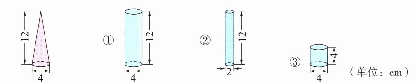 (2)圆柱①的体积是圆柱②的体积的( )倍,是圆柱③的体积的( )倍。