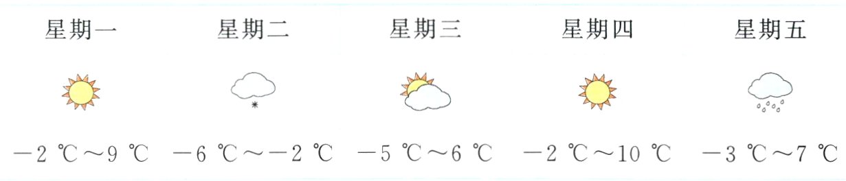 4. 今天是星期一,下表是石家庄市最近五天的天气预报情况。