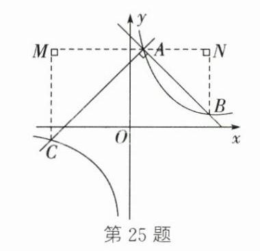 25.(10分)如图,直线$y = -x + 7$与反比例函数$y = \frac{k}{x}$的图象交于点$A(1,m)$和点$B$。