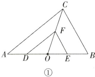 (1)在$\triangle AOB$中,$\because D$,$E$分别是$OA$,$OB$的中点,$\therefore DE =$$\frac{1}{2}AB$.同理,可得$EF=\frac{1}{2}BC$,$DF=\frac{1}{2}AC$,$\therefore \frac{DE}{AB}=\frac{EF}{BC}=\frac{DF}{AC}=$$\frac{1}{2}$.$\therefore \triangle DEF\sim\triangle ABC$ (2)如图①.当点$O$在边$AB$上时,$\because$在$\triangle AOC$中,$D$,$F$分别是$OA$,$OC$的中点,$\therefore DF=\frac{1}{2}AC$.同理,可得$EF=\frac{1}{2}BC$.$\because D$,$E$分别是$OA$,$OB$的中点,$\therefore OD=\frac{1}{2}OA$,$OE=\frac{1}{2}OB$.$\therefore DE = OD + OE=\frac{1}{2}OA+\frac{1}{2}OB=\frac{1}{2}(OA + OB)=$$\frac{1}{2}AB$.$\therefore \frac{DE}{AB}=\frac{EF}{BC}=\frac{DF}{AC}=\frac{1}{2}$.$\therefore \triangle DEF\sim\triangle ABC$.$\therefore$(1)中的结论仍成立 (3)如图②.当点$O$在$\triangle ABC$外时,$\because$在$\triangle AOC$中,$D$,$F$分别是$OA$,$OC$的中点,$\therefore DF=\frac{1}{2}AC$.同理,可得$EF =$$\frac{1}{2}BC$,$DE=\frac{1}{2}AB$.$\therefore \frac{DE}{AB}=\frac{EF}{BC}=\frac{DF}{AC}=\frac{1}{2}$.$\therefore \triangle DEF\sim\triangle ABC$.$\therefore$(1)中的结论仍成立