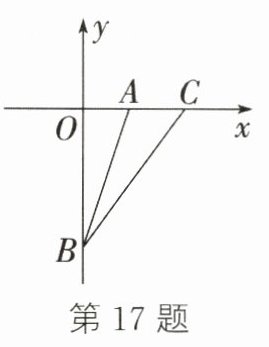 17. (广元中考)如图,在直角坐标系中,点A的坐标为(1,0),点B的坐标为(0,-3),点C在x轴上,且点C在点A右边,连接AB,BC. 若tan ∠ABC = $\frac{1}{3}$,则点C的坐标为________.
