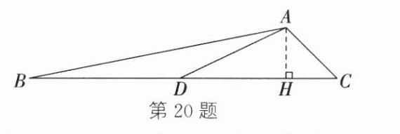 20. (8分)如图,AD是△ABC的中线,tan B = $\frac{1}{5}$,cos C = $\frac{\sqrt{2}}{2}$,AC = $\sqrt{2}$. 求: