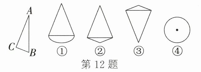12. 将如图所示的△ABC绕AB所在直线旋转一周,所得的几何体的主视图是图中的_______(填序号).