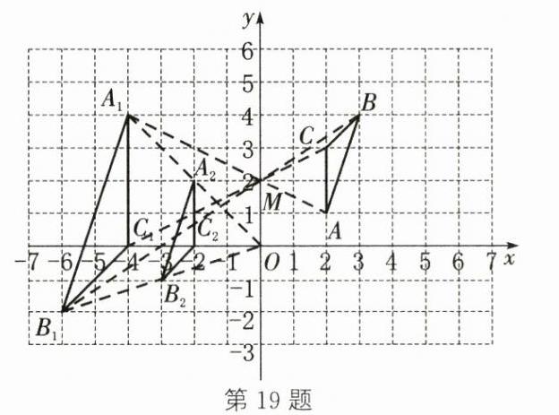 19. (6分)如图所示为小华利用软件在直角坐标系中画出的△ABC和它的位似图形△A₁B₁C₁(三角形的顶点都在格点上).