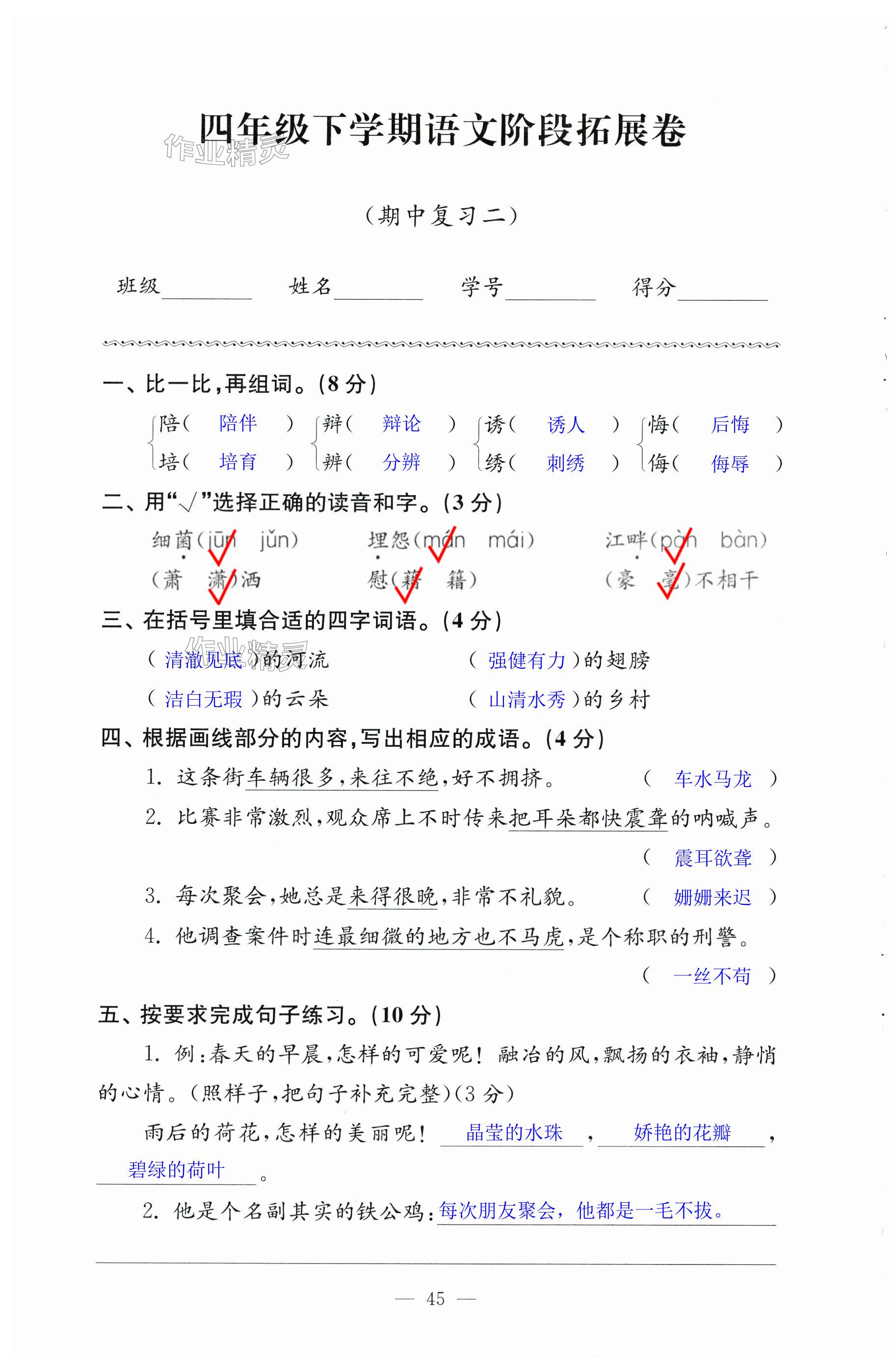 注:目前有些书本章节名称可能整理的还不是很完善,但都是按照顺序排列的,请同学们按照顺序仔细查找。练习册 2025年强化拓展卷四年级语文下册人教版提优版 答案主要是用来给同学们做完题方便对答案用的,请勿直接抄袭。