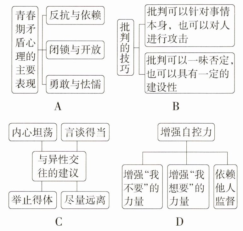 |④|为了避嫌,小方从来不跟异性同学交流|理智处理异性间的交往|