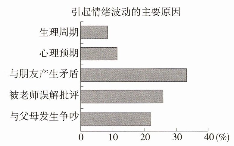13.新中考·调查结果解读 (2023山东烟台中考,16,★☆☆)道德与法治课上,老师在组织《揭开情绪的面纱》一课教学时,开展了有关“情绪波动原因”的问卷调查,如图是数据统计结果。对此理解正确的是 ( )