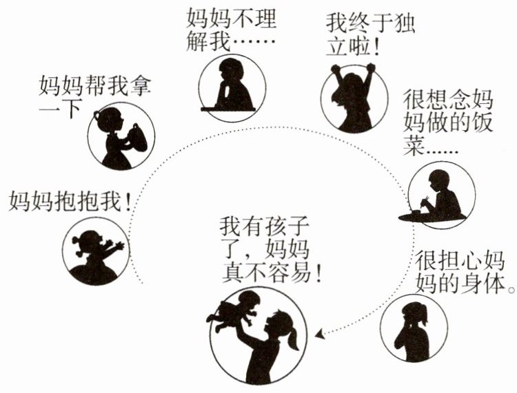 B 根据所学知识可知,B说法正确;A、C、D排除,图片讲的是随着生活经历的积累,“我”逐步理解妈妈。身体的发育、情感正能量的传递、周围人的热情帮助并不是理解妈妈的原因。
