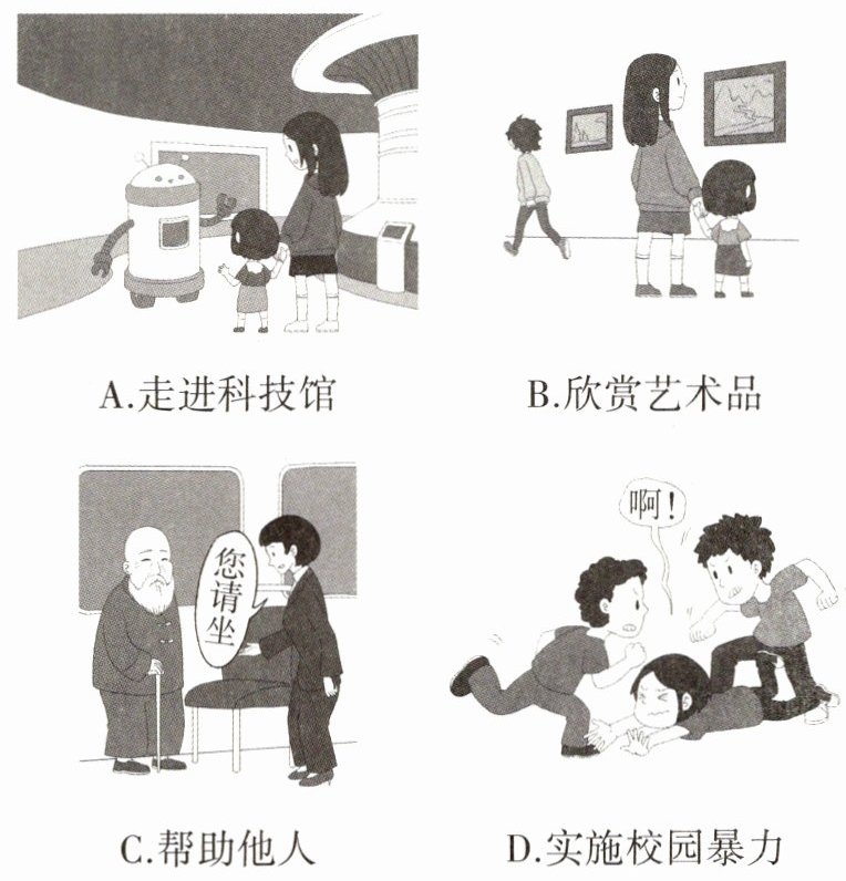 13. (2023山东淄博张店区期末,1,★☆☆)小亮要制作一期弘扬正能量、传递美好情感的手抄报。以下几幅图片,你认为不适合采用的是( )