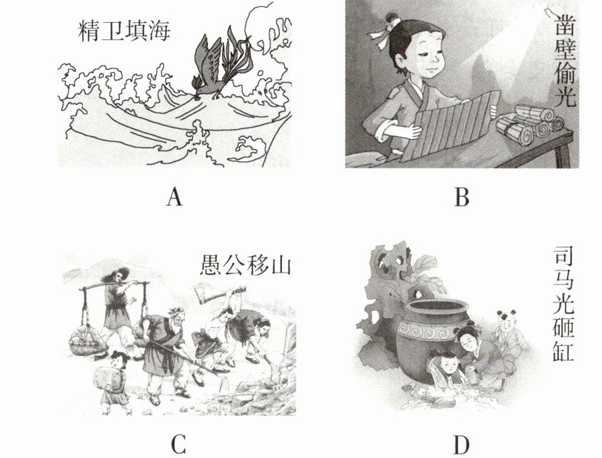 D 本题主要考查思维的独立性。精卫填海比喻不畏艰难,努力奋斗,A不符合题意。凿壁偷光形容学习勤奋刻苦,B不符合题意。愚公移山借指做事有毅力,有恒心,不怕困难,C不符合题意。司马光砸缸的故事告诉我们遇到困难时,应该沉着冷静,有自己独到的见解,这是独立思考的体现,D符合题意。故选D。