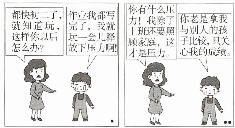 (2)从情感角度回答,言之有理即可。示例:学会表达对父母的关心。情感需要表达、回应,需要共鸣。在与他人的情感交流中,我们可以传递美好的情感,传递生命的正能量。通过关心父母,传递我们美好的情感,化解亲子矛盾。(8分)