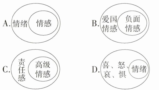 11. 新中考·关系示意图再现教材知识 在复习《做情绪情感的主人》时,李辉同学总结了以下关系示意图,你认为其中正确的是( )