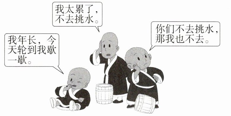 4.阅读下面小付改编的《三个和尚没水喝》的漫画,从中能得到的警示有 ( )