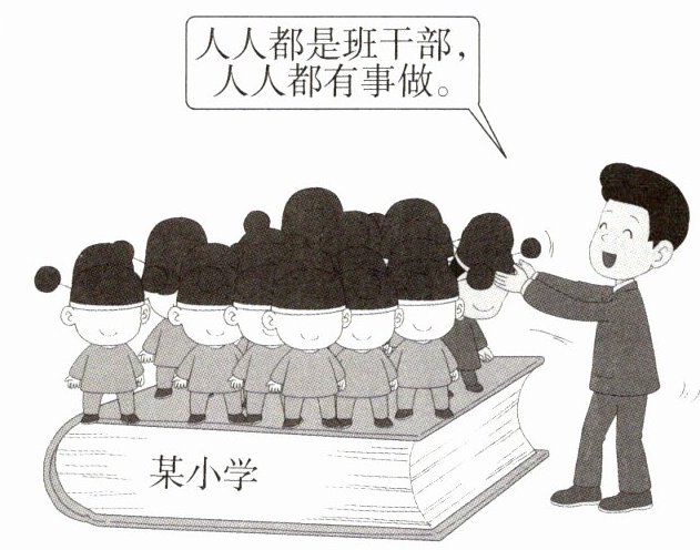 8.(2023湖北潜江、天门、仙桃、江汉油田中考,2,★☆☆)51个娃设53个班干部岗位,“饮水机长”“走廊廊长”“桌长”……四川一位小学班主任的做法在网上引起热议。有人为此点赞,也有人担心会在学生心中形成“官本位”思想。对这种做法的评析你赞同的有 ( )