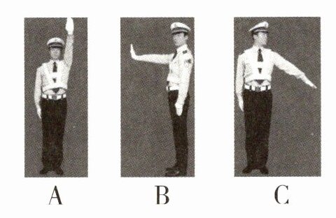 (2)假如你是交警,看到情景剧二中小陈的这一幕你会做出下列手势中的哪一个? 为什么?