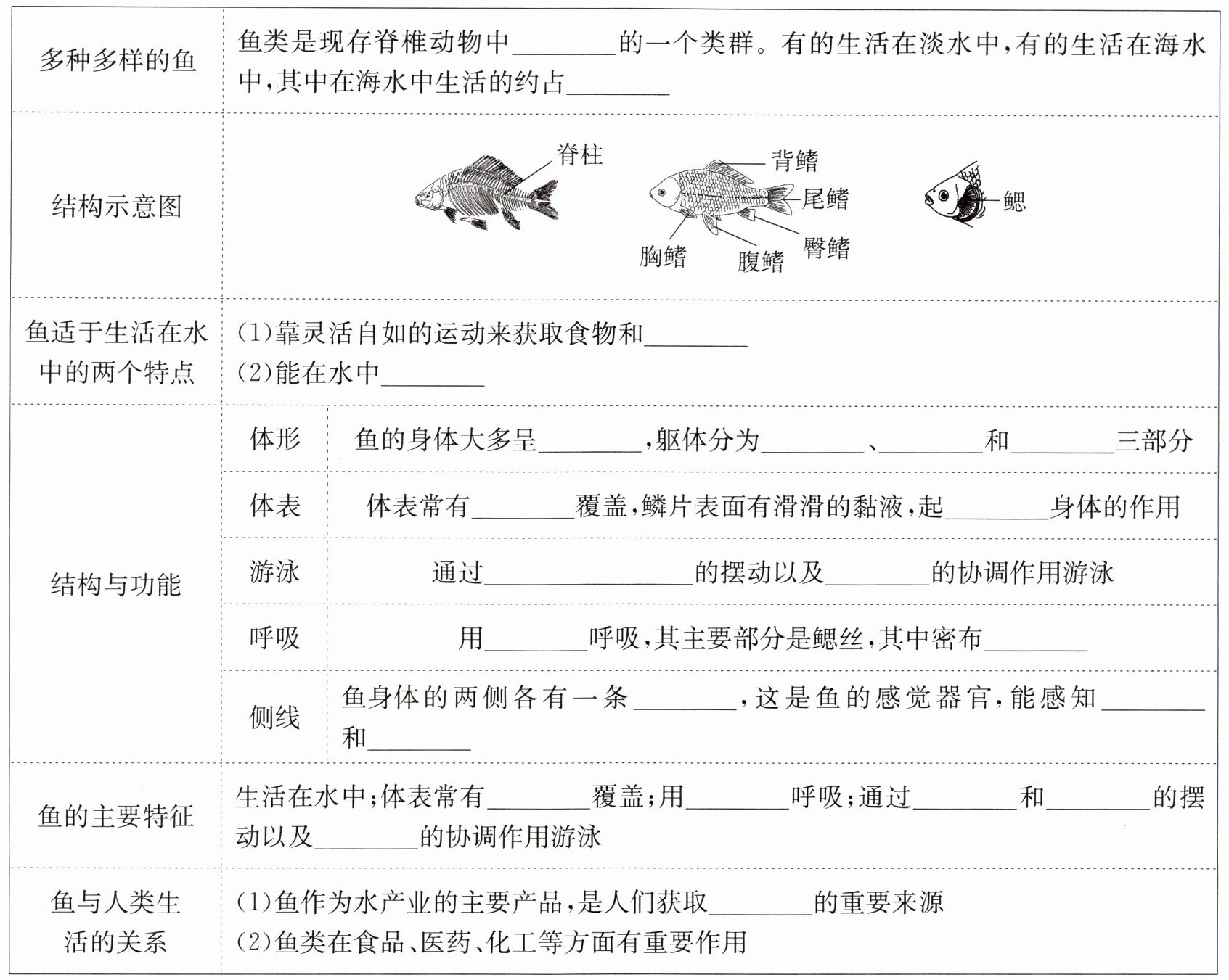3.(高唐校级月考)“鱼戏莲叶间”是描写小鱼在莲叶间自由游泳时的情景。鱼在水中游泳时产生前进动力的主要结构是( )
