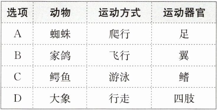C [解析]鳄鱼属于爬行动物,运动器官是四肢。
