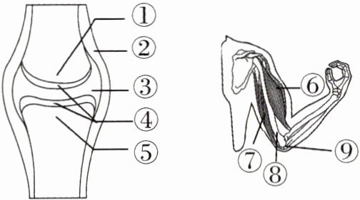 B [解析]关节囊及其里面和外面的韧带使关节更加牢固,A错误;运动员游泳胳膊前伸时,[⑥]肱二头肌舒张,[⑦]肱三头肌收缩,C错误;运动时[⑧]骨、[⑨]肘关节分别起杠杆和支点的作用,D错误。