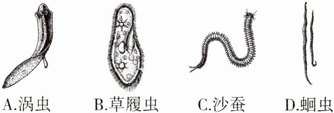 A [解析]身体是否分节是区分线形动物还是环节动物的主要依据,故 A 符合题意。
