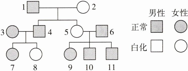 C [解析]个体 3 和 4 均正常,却生出白化病的女儿 8,可以推断个体 3 和 4 的基因型均为 Aa,其遗传图解如图所示: