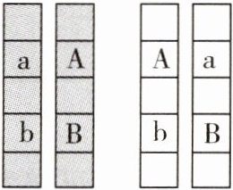 步骤一:用两条相同灰色纸条模拟父方体细胞染色体,两条相同白色纸条模拟母方体细胞染色体;在每条纸条上标注A或a、B或b,表示染色体上的基因,如图。