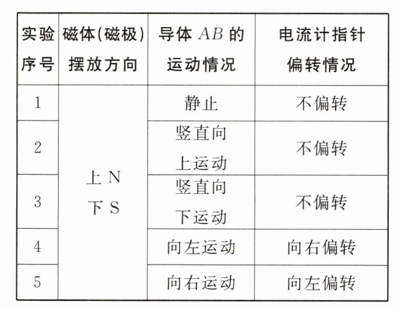 (1)在老师的指导下,兴趣小组进行实验,观察到的现象如表所示. 由此可知:闭合电路中部分导体在磁场中做 ____________运动时,电路中产生感应电流.