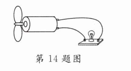 14. [2024·桂林二模]如图所示,一个小型风力发电机上连接着灯泡,吹动扇叶时,与之连接的灯泡发光,该发电过程中将 ________能转化为电能,发电机中一定 ________(填“有”或“没有”)磁体.