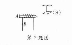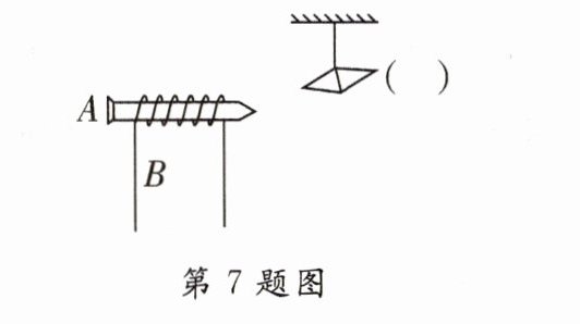 7. [2024·眉山]探究“电磁铁的性质”实验时,铁钉 A 端为 N 极,附近的小磁针处于静止,如图所示. 请你在图中: