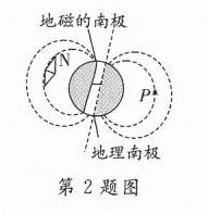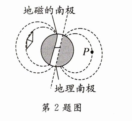 2. [2024·昆明模拟]如图所示,请根据地球磁场的方向,标出静止在地磁场中小磁针的 N 极,用箭头标出 P 点的地磁场方向.