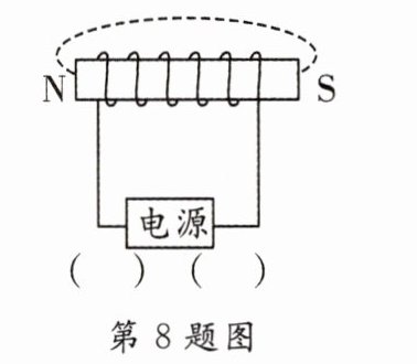 8. [2024·扬州]如图所示,请标出电源正负极和磁感线的方向.