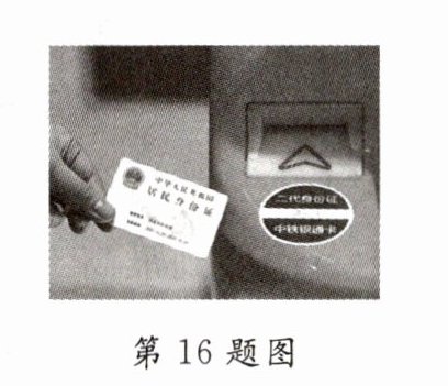 16. [2024·唐河二模]如图所示是乘客通过“刷身份证”进站时的情景.将身份证靠近检验口,机器感应电路中就会产生电流,从而识别乘客身份.下列器件与此工作原理相同的是 ( )